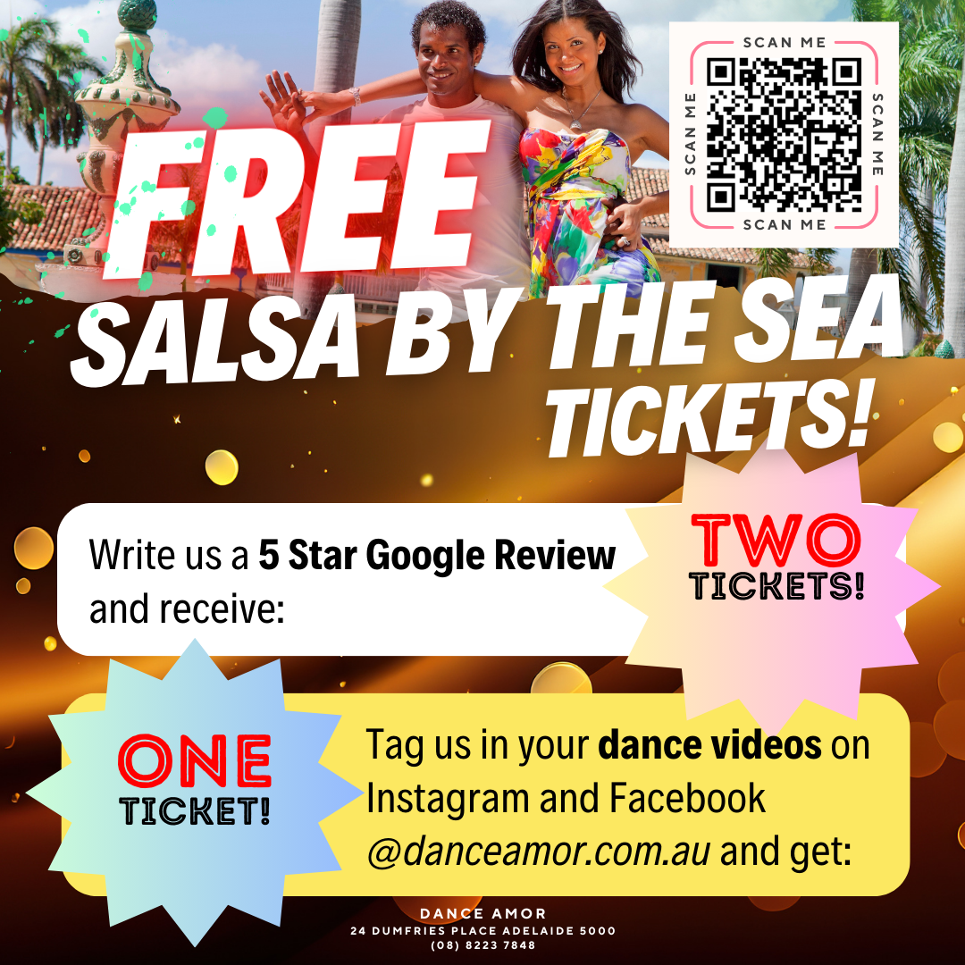 - Leave us a glowing 5-star Google Review, and you’ll receive 2 FREE tickets to our next Salsa by the Sea (Sunday, 27 April).